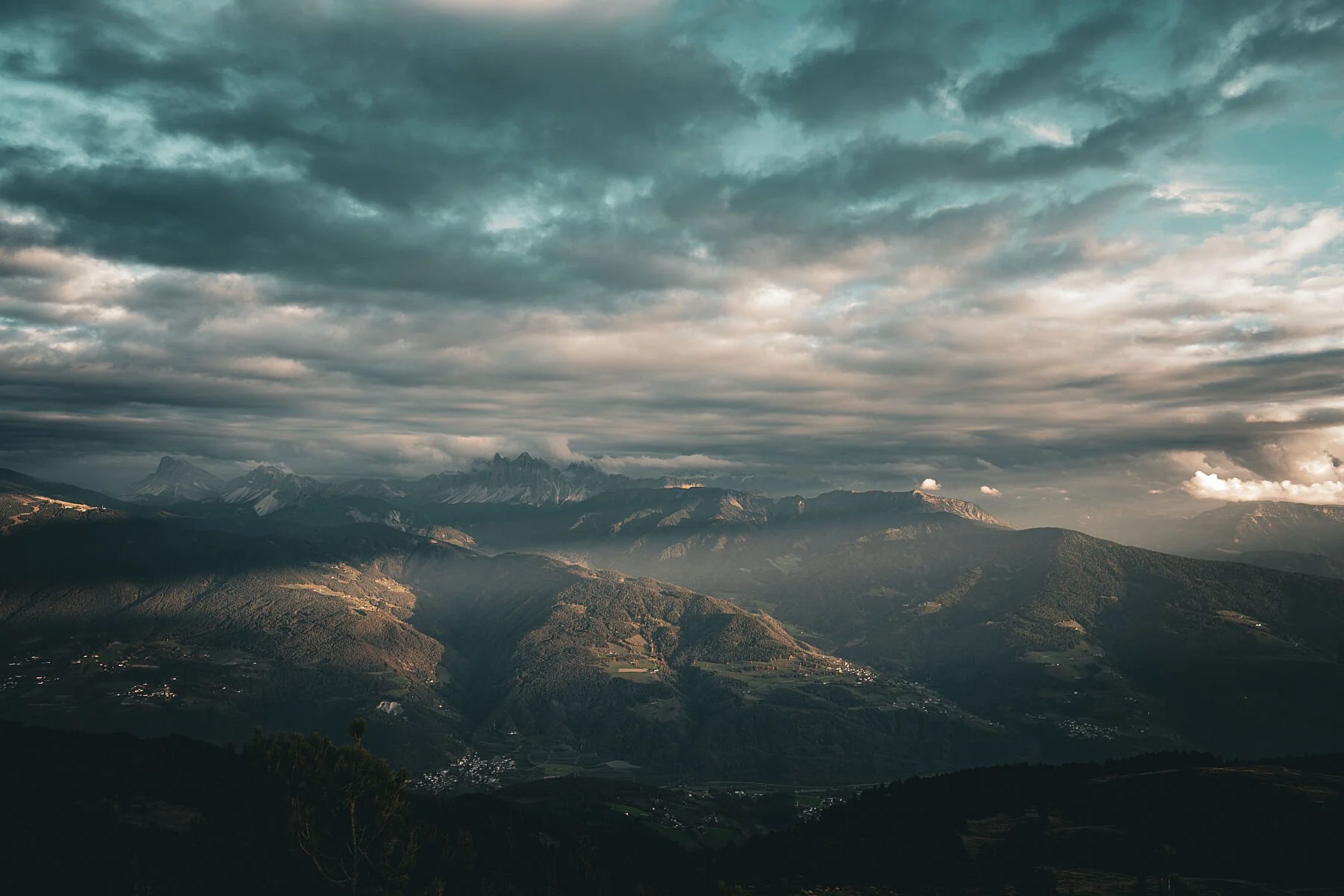 So many plains stretch out before me. The pasture directly below me, a village in the valley, hills full of meadows and forests above of it and in the distance the Dolomites tower like a kingdom of rocks.
